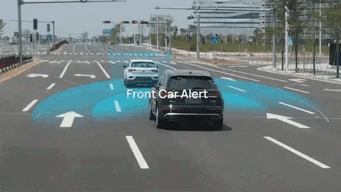 Frontal Collision Warning System (FCWS): Maintaining a safe following distance can prevent accidents. The Road Safety Warning System calculates the real-time distance between the vehicle and the vehicle in front of it when driving at speeds higher than 30 km/h on a highway or at speeds lower than 30 km/h in a busy city, and issues a 3-level warning to the driver based on the risk of collision.